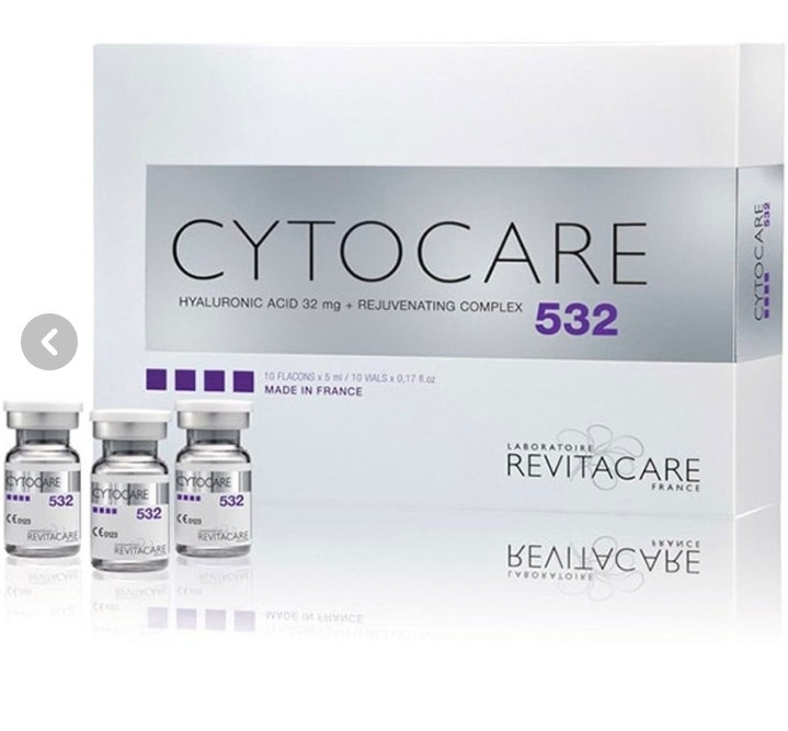 کوکتل مزو جوانساز مدل سیتوکر 532 اصل رویتاکر یکی از بهترین کوکتل های مزوتراپی به شمار میرود که ساخت کشور فرانسه بوده و برای استحکام و زیبایی پوست بسیار موثر است. استفاده از این کوکتل در فرایند مزوتراپی سبب درمان چین و چروک پوستی ، درمان خشکی پوست و آبرسانی آن میگردد و در انتها هم در شادابی و زیبایی پوست صورت و گردن بسیار موثر است.